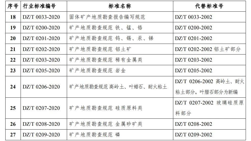 《固體礦產勘查大要研討規范》等37項行業規范和9項行業規范點竄單已經由過程天下天然資本與河山空間計劃規范化手藝委員會檢查,現予核準、宣布,并于宣布之日起實行。編號及稱號見附件。 1. 37項行業規范編號及稱號.doc PDF版下載 2. 9項行業規范點竄單編號及稱號.doc PDF版下載